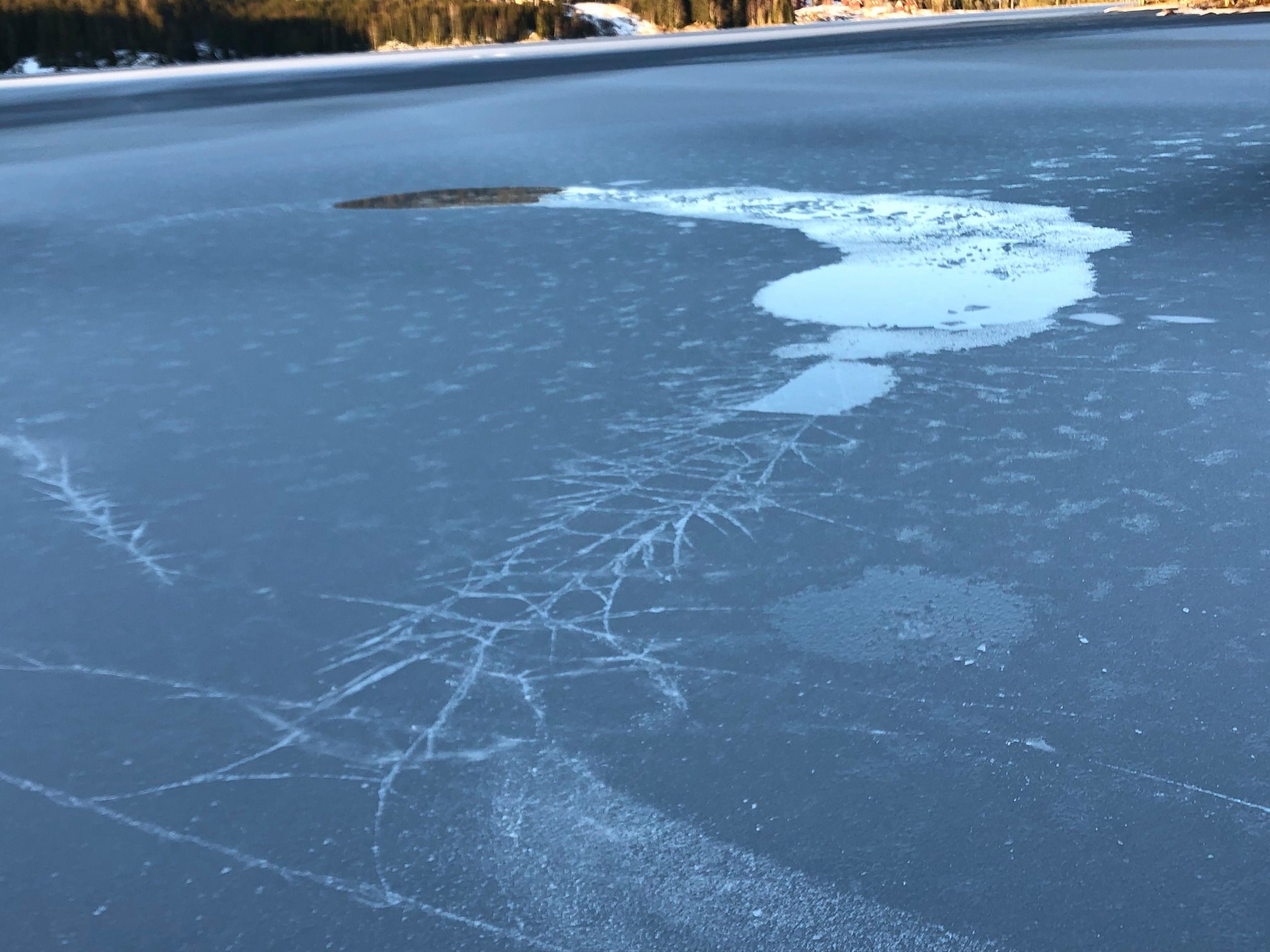 Mange nye skøytere synes det skumleste med å ferdes på islagte vann er muligheten for å gå gjennom isen. Selv er jeg mer redd for å kjøre inn i et felt med overis, ramle og kutte meg opp.