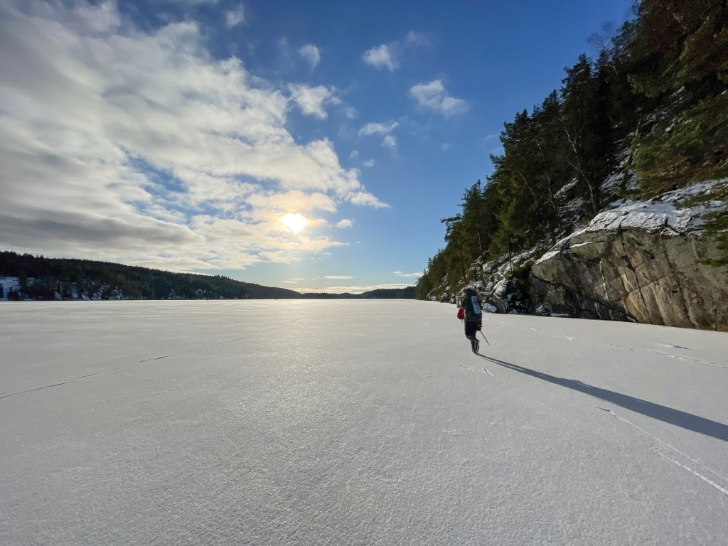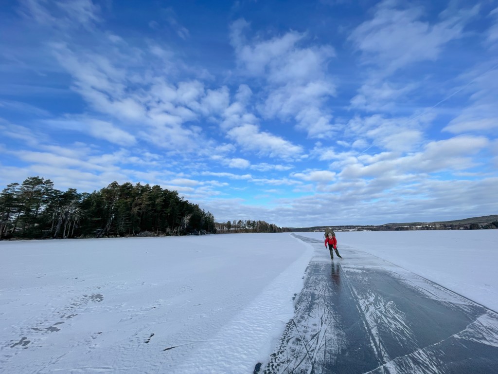 Ideen poppet plutselig opp etter en helg med mye fin og blank stålis ved grensesømmen. Det blei litt frem og tilbake etter siste lette snøfall, men vi bestemte oss til slutt for at snøen ikke skulle stoppe denne mini-skøyteekspedisjonen og prioriterte vekk finere is andre steder i landet.