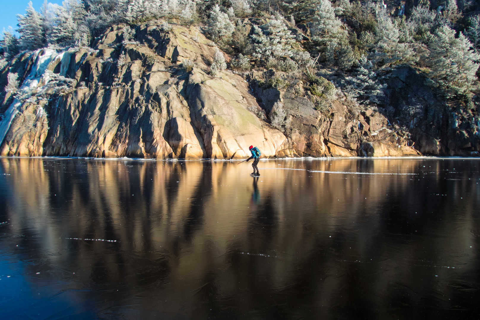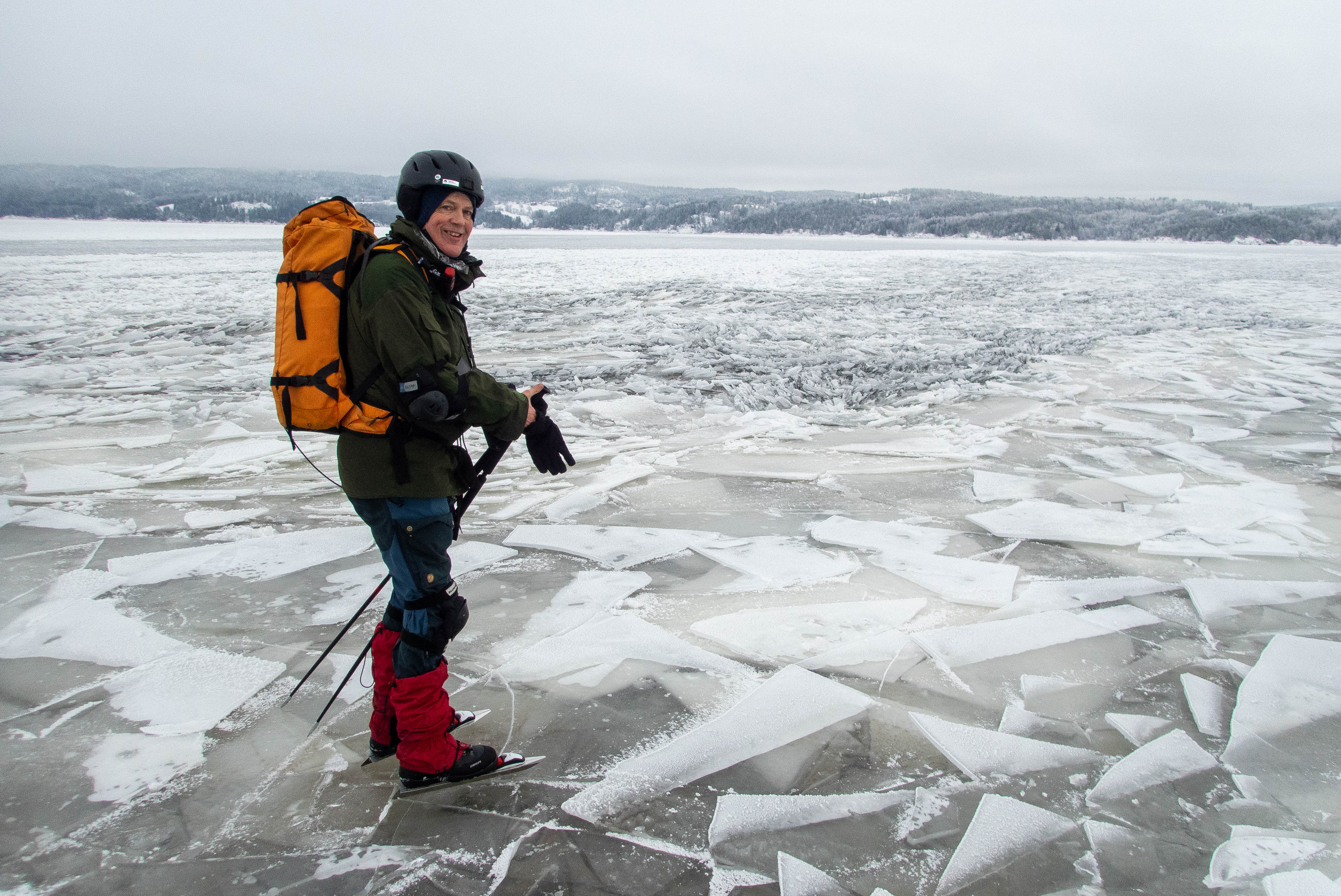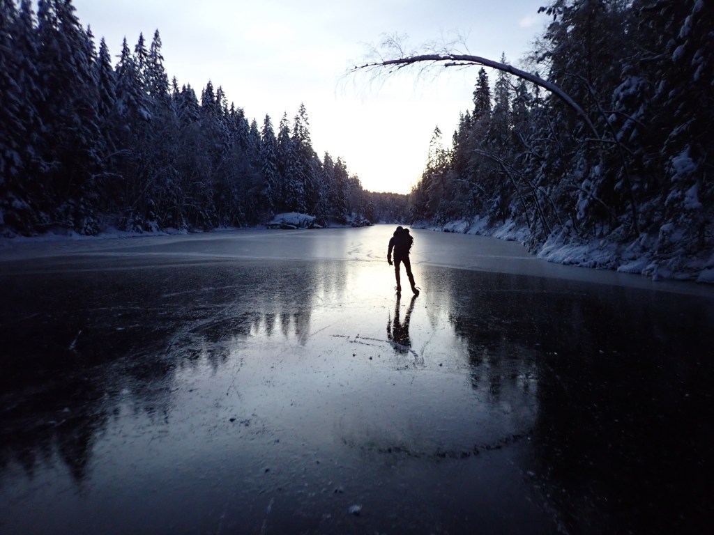 Skøyting gir frihet. Du kan bevege deg hit eller dit, skifte retning og følge lysten. Du kommer tett på, inni alle viker og kriker og kroker. Du kan krysse storslåtte flater eller smale sund. Du kan gå fort eller langsomt. Du kan se ned på detaljene eller opp på det storslagne. Og ofte er naturopplevelsen så sterk at du er nødt til å fleske til med et jubelrop for å markere din begeistrede hengivenhet.