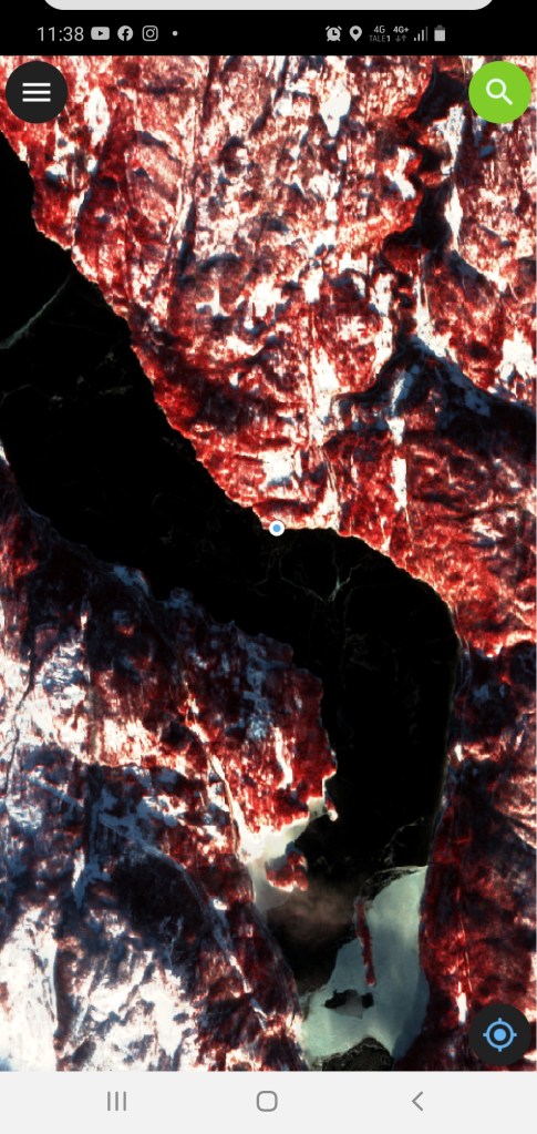Det har blitt gjort noen innledende tester med å bruke et geo-lokalisert satellittbilde som bakgrunnskart på mobilen og så få vist sin posisjon direkte i satellittbildet i sann tid. Bildet til venstre fra Tinnsjøisen viser en blå prikk fra lunsj langs bredden. Dette kan vise seg svært nyttig for å navigere i varierende islandskap og ukjent terreng på sikt. Opptegning av spor direkte i bildet er ennå ikke oppe og kjører men man finner sikkert ut av det også.