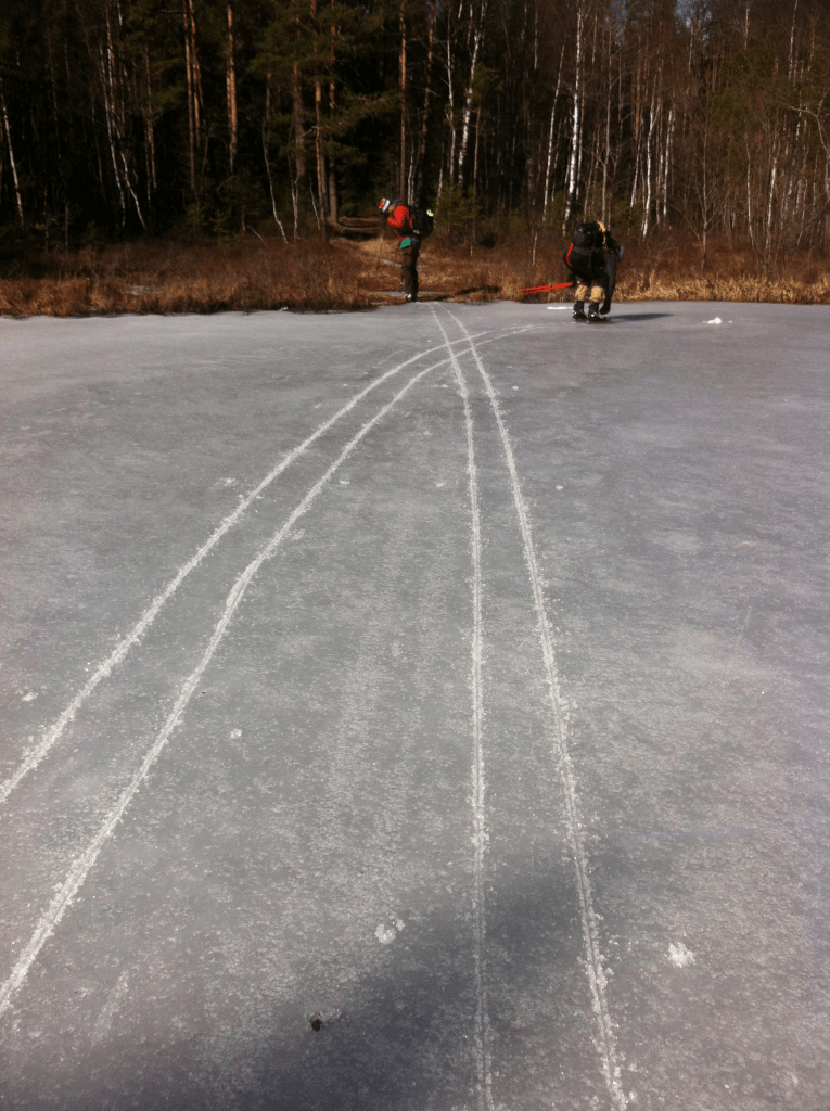 Fuglene våkner til liv, og spiller opp for å markere revir, og lokke til seg make. Hakkespettene er dominerende, men kjøttmeiser og andre småfugler er allerede i gang. Snart kommer trekkfuglene. 24 mars 2017 gikk vi Børtervanna rundt på 30 cm hard fin is, liknende slik det er nå i begynnelsen av mars 2021. I 2017 hørte vi både gjess og traner, ravn og svartspett, og kunne skøyte opp og ned langs breddene i et sterkt nedtappa vann. Det er stor naturopplevelse å stå på isen på Børtervann og høre kraftige rop fra traner som tar pause på trekket nordover. Tranebæra kommer nå fram på myrene, beverne blir aktive i flobeltet, og dagene er lange og lyse. Etter hvert som isen morkner og blir borte sørover og i lavlandet, åpenbarer isen seg innover i Marka når snøen smelter. Fjorårssesongen var ikke veldig bra. Det var alt for mildt, og Vansjø la seg aldri, men våren var ikke så ille i høyden. I april kom Lillomarka- og Nordmarkavanna, Langevann, Øyungen, Rottungen, Bjørnsjøen, Heggelivann og Fyllingene fram til 19 april. Det er bare å følge med og finne de flotte områdene, og så passe på å avslutte i rett tid på dagen og for sesongen.