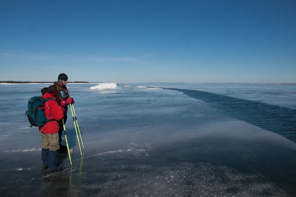 Isen ligger blank og innbydende så langt øyet kan se. Noen ganger har isen feste i øyer som holder isen på plass selv om været står på, mens andre ganger er det de ytre isene som grenser mot åpent vann som frister. Selv om isen er tykk er det viktig å ta hensyn til vindretning og ha et oppdatert værvarsel før man skøyter langt fra land.