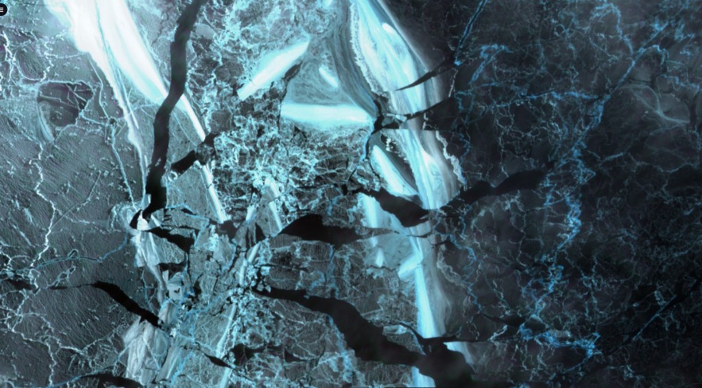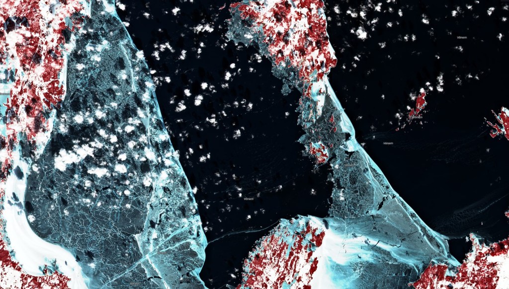 Hva som skjedde i stort denne dagen var ikke mulig å få med seg fra vårt perspektiv nede på isen. Svaret fikk vi først se i et satellittbilde dagen derpå som viser skremmende store endringer.