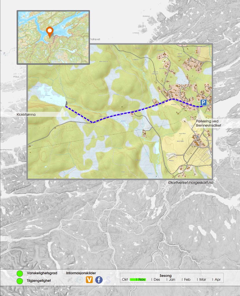 Klokktjønna legg seg normalt i oktober / november. Bymarka er snørik, så sesongen kan vere kort.