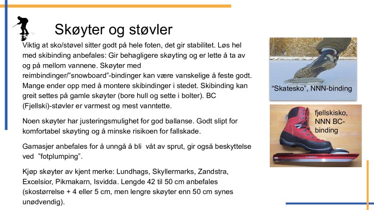 Introduksjonskurs – Utstyr Støvel: Hvis støvelen sitter godt over vrista, kan foten styre skøyta og gi stabilitet. Da trenger man ikke stramme støvelskaftet så hardt rundt ankelen (noe som kan gi gnag og hindre bevegelse i foten). Sidene: 1 2 3 4 5 6 7